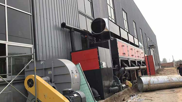 活性炭吸附箱體在有機(jī)廢氣吸附達(dá)到飽和之后,需要將活性炭中的廢氣脫附下來,然后進(jìn)入催化燃燒室燃燒。在將廢氣進(jìn)行催化燃燒凈化的過程中,廢氣經(jīng)管道由風(fēng)機(jī)送入熱交換器,將廢氣加熱到催化燃燒所需要的起始溫度。經(jīng)過預(yù)熱的廢氣,通過催化劑層使之燃燒。由于催化劑的作用,催化燃燒中廢氣燃燒的起始溫度約為250~300攝氏度,遠(yuǎn)遠(yuǎn)低于直接燃燒法的燃燒溫度650~800攝氏度,脫附后的高溫氣體達(dá)標(biāo)再次進(jìn)入熱交換器,經(jīng)換熱冷卻,以較低的溫度經(jīng)風(fēng)機(jī)排入大氣中。
