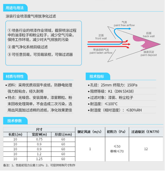 V型干式過濾紙,又稱油漆過濾紙,漆霧過濾紙、折疊式過濾紙板。是使用于干式噴漆房內(nèi)的一種環(huán)保型產(chǎn)品,可有效過濾油漆類,油類,玻璃原料,環(huán)氧樹指,柏油,鐵弗龍,液化工件,塑膠,烤瓷,染料,涂裝類廢氣顆粒,過濾效果高達(dá)90%以上,在噴房工作環(huán)境要求較高或者濕度較大時(shí)使用仍然有效果。