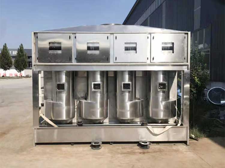 整體使用1.5厚304不銹鋼制作,設(shè)備有3個氣旋桶,兩臺水泵。水泵功率1.1KW.
