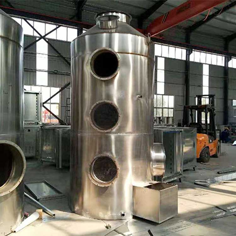 一般情況下,噴塔由耐腐蝕材料制成,如玻璃鋼,不銹鋼, pp噴塔等。工業(yè)尾氣一般為含酸、堿等腐蝕性氣體,采用防腐材料是為了使設(shè)備在運行過程中不受腐蝕。本實用新型造價低,占地面積小,操作維護方便,尤其適合處理高溫高濕、易燃易爆等含塵廢氣。