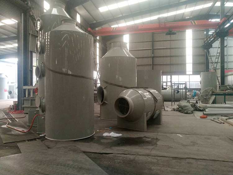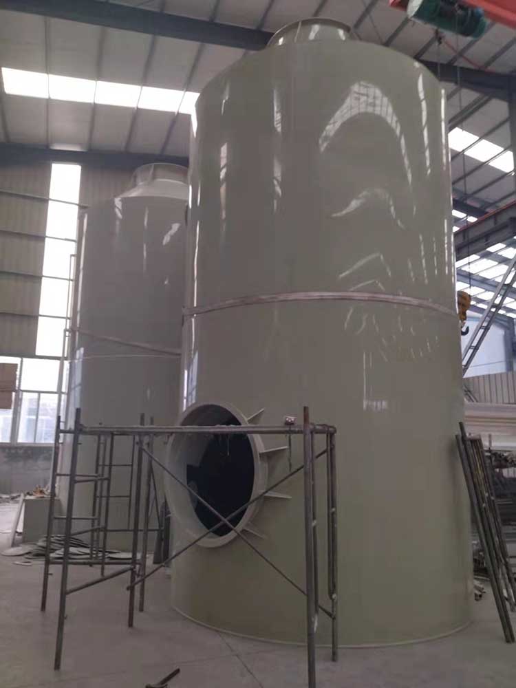 1.5萬風(fēng)量pp噴淋塔塔規(guī)格為:ф1.8m*H4.0m*10mm。進、出風(fēng)口直徑均為600mm。循環(huán)水量每小時22立方。每小時處理廢氣量15000立方左右。凈化塔整體厚度為8mm PP板。塔體內(nèi)部有二層水噴淋裝置,三層浮球填充,帶水箱和2.2KW純銅芯普通循環(huán)水泵。