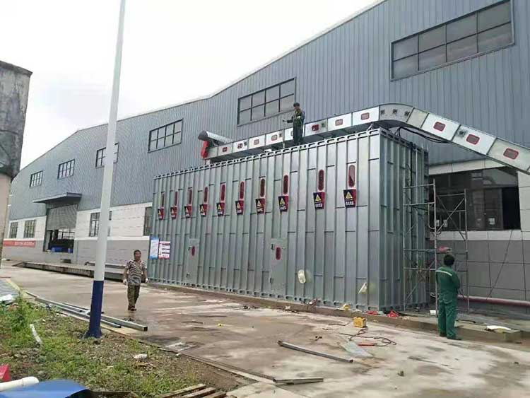 5、火情檢測盒滅火系統(tǒng):設(shè)備出風口設(shè)置火情檢測探頭用于火情檢測。滅火噴淋裝置安裝于主風筒內(nèi),用于滅火,以有效保護系統(tǒng)的運行安全。探測器探測到火情時,立即報警,關(guān)閉主機,同時開啟消防泵進行噴淋滅火。