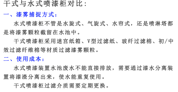 3、地棉過(guò)濾干式噴漆柜,實(shí)踐證明吸附效果好。