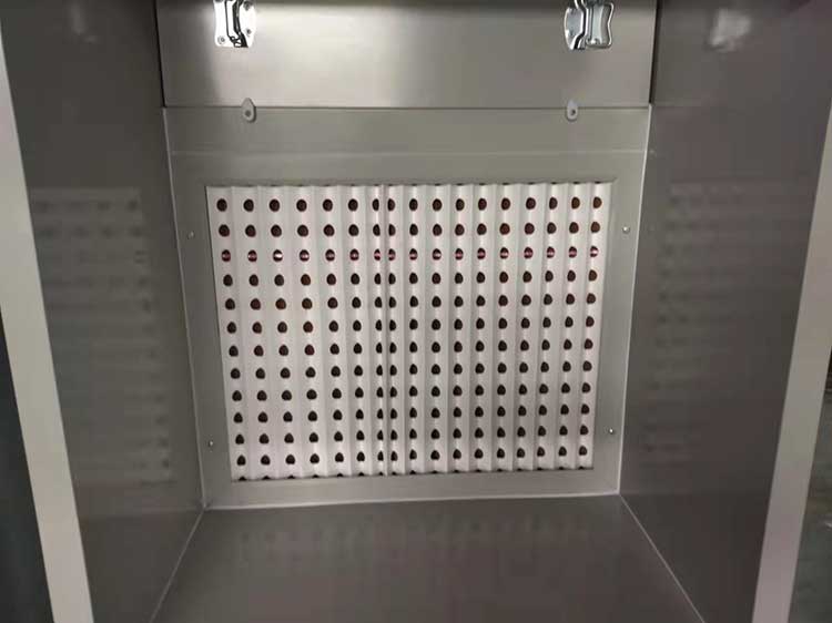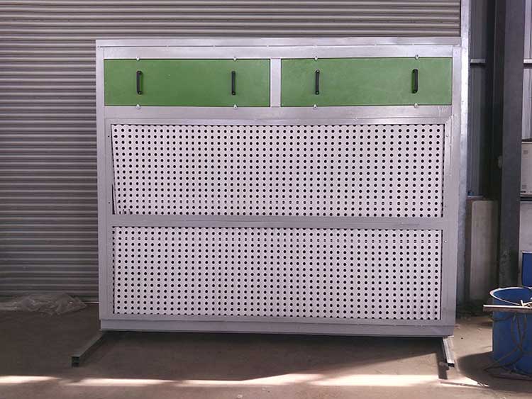 使用干式噴漆柜的噴漆室,因?yàn)槠浞蛛x漆霧的過(guò)程中不使用水,純干式的方式分離漆霧,故稱(chēng)為干式噴漆室。干式噴漆室按照分離漆霧的形式可以分為以下幾種類(lèi)型:折流式漆霧捕集箱式干式噴漆室、石灰式干式噴漆室、靜電式干式噴漆室,漆霧氈式干式噴漆室,風(fēng)琴紙式。