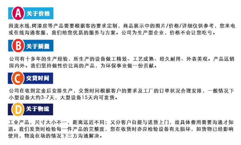 公司的環(huán)保設(shè)備有VOCs廢氣處理設(shè)備、工業(yè)粉塵處理設(shè)備兩大類。廢氣治理環(huán)保設(shè)備有催化燃燒設(shè)備、pp噴淋塔、活性炭吸附箱、移動(dòng)伸縮噴漆房、氣旋塔水簾噴漆柜、漆水分離一體機(jī)等環(huán)保設(shè)備。粉塵處理設(shè)備包括濾筒式脈沖除塵器、布袋除塵器打磨吸塵工作臺(tái)、水簾式打磨臺(tái)等設(shè)備。我們可以根據(jù)企業(yè)的實(shí)際情況定制合適的環(huán)保設(shè)備。歡迎您來電咨詢15665879292,或者添加網(wǎng)頁(yè)下面微信,把您的廢氣治理需求告訴我們,我們?yōu)槟峁┰O(shè)備的詳細(xì)參數(shù)、配置及價(jià)格,為你提供相關(guān)設(shè)備的案例圖片或視頻,同時(shí)可以給您發(fā)公司車間正在加工設(shè)備的視頻或圖片。